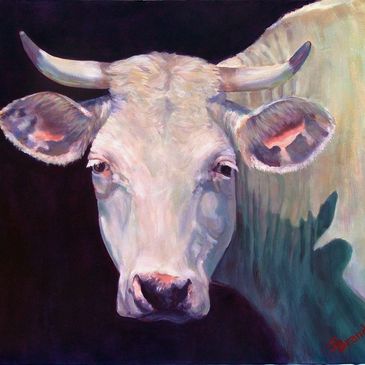 I love painting domestic "critters", and have completed a series of cow paintings I consider my "Divine Bovine" collection. That has been followed by additional paintings of other domestic and wild animals, which are collectively called my "Divine Menagerie". I attempt to capture the personalities of my subjects, and consider my paintings to be portraits of these beautiful creatures.